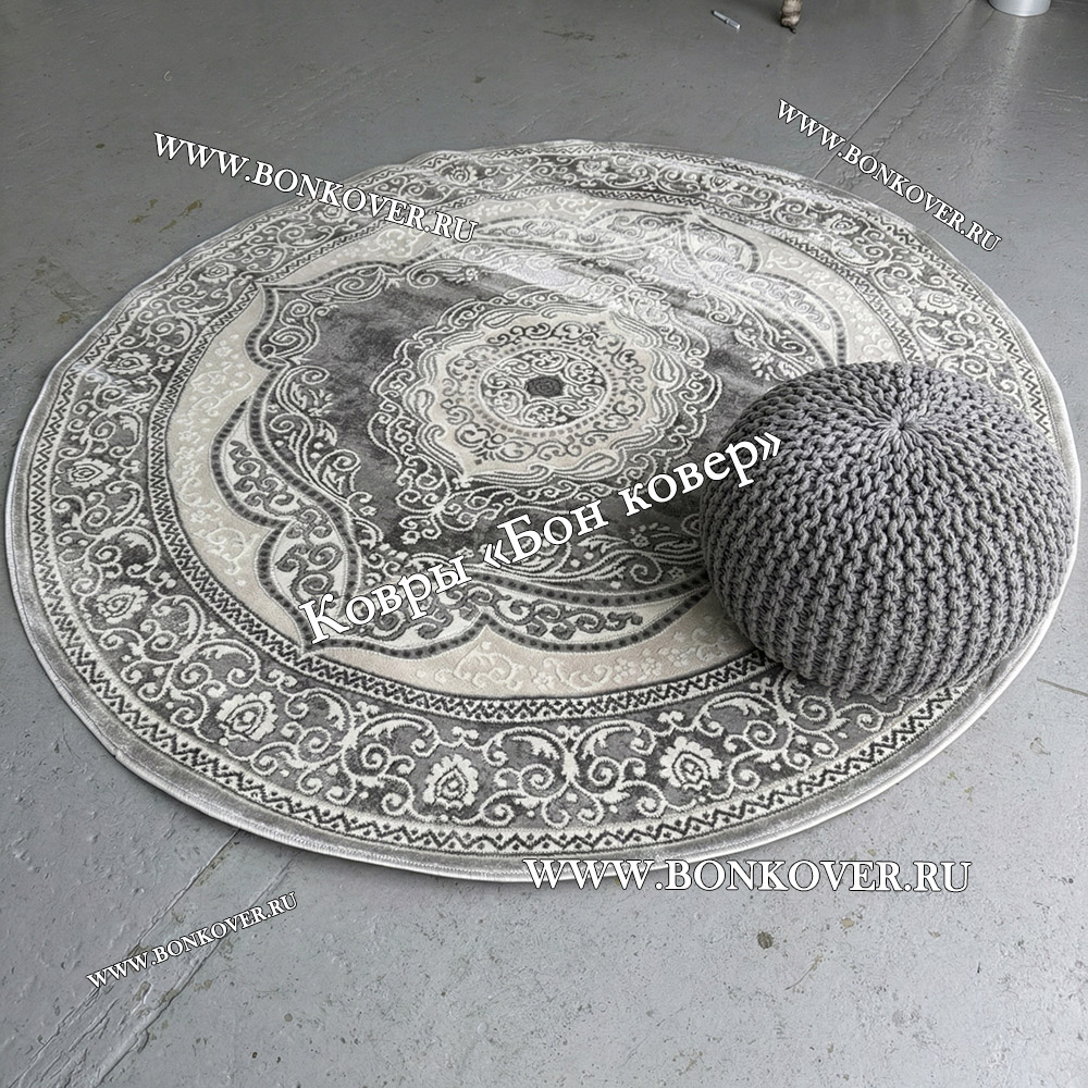 Шикарный Круглый ковер в гостиную дизайн 01 Серый наполняет интерьер квартиры теплом и уютом, гармонично сочетает в себе изящество и красоту. Он изготовлен из износостойких материалов, комфортный и долговечный.